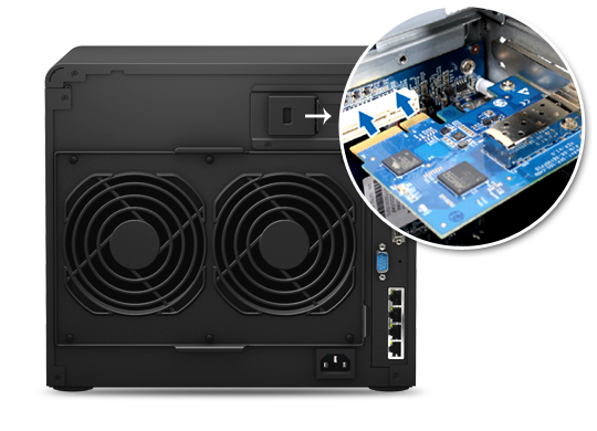 除了內(nèi)建的四個(gè) Gigabit 網(wǎng)絡(luò)埠之外,DS3615xs 內(nèi)建一個(gè) PCI Express 3.0 x8 插槽來安裝 10GbE 的網(wǎng)絡(luò)適配器 (NIC),藉以提升網(wǎng)絡(luò)聯(lián)機(jī)帶寬,為你存儲(chǔ)系統(tǒng)上需要處理大量數(shù)據(jù)的應(yīng)用程序提供優(yōu)越效能。此外,DS3615xs 內(nèi)建每秒 6Gb SATA III 介面支持,可將 SSD 的高速傳輸效能完整發(fā)揮,確保系統(tǒng)處理多項(xiàng)任務(wù)時(shí),仍維持良好的傳輸效率。