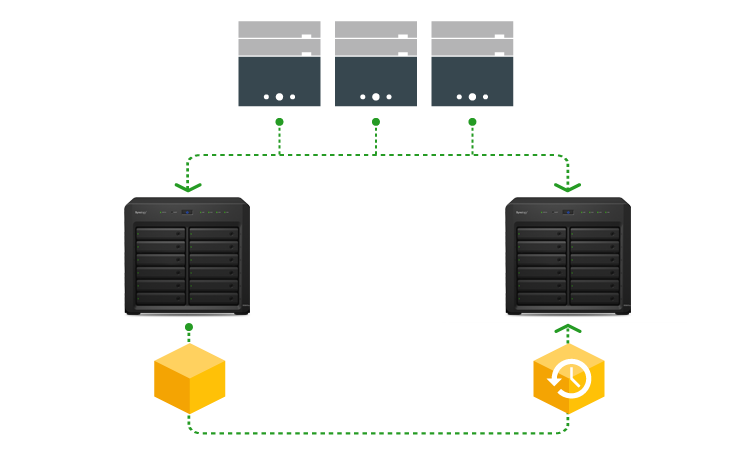 對于所有企業(yè)而言,提供不中斷的服務(wù)是非常重要的目標(biāo)。DS3615xs 提供 Synology High Availability (SHA) 技術(shù),其連接了主動(dòng)與被動(dòng)服務(wù)器,前者的所有數(shù)據(jù)皆鏡射至后者,當(dāng)主動(dòng)服務(wù)器出現(xiàn)錯(cuò)誤時(shí),被動(dòng)服務(wù)器馬上取而代之。共享文件夾同步可將數(shù)據(jù)實(shí)時(shí)復(fù)制至另一臺(tái)遠(yuǎn)程的 Synology NAS,在復(fù)原時(shí)間目標(biāo) (Recovery Time Objective, RTO) 內(nèi)回復(fù)企業(yè)因服務(wù)器故障而中斷的服務(wù)。此外,通過多網(wǎng)絡(luò)端口鏈接,DS3615xs 在單一網(wǎng)絡(luò)功能異常時(shí),也能提供備援機(jī)制。