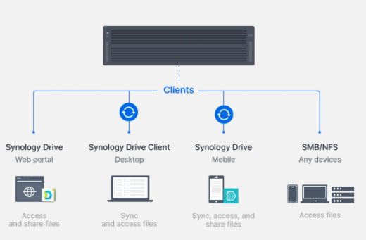 • Synology Drive 專屬私有企業(yè)云盤,可通過桌面客戶端和移動應(yīng)用程序,實現(xiàn)遠程數(shù)據(jù)存取、同步、以及靈活的文件還原和備份。 在不同平臺和設(shè)備之間同步數(shù)據(jù),并使用移動應(yīng)用程序、桌面客戶端和網(wǎng)頁界面存取文件。設(shè)置精細的文件和文件夾訪問和共享權(quán)限。在 Synology Drive 管理控制臺中,能輕松維護文件并通過詳細記錄跟蹤文件共享設(shè)置更改。