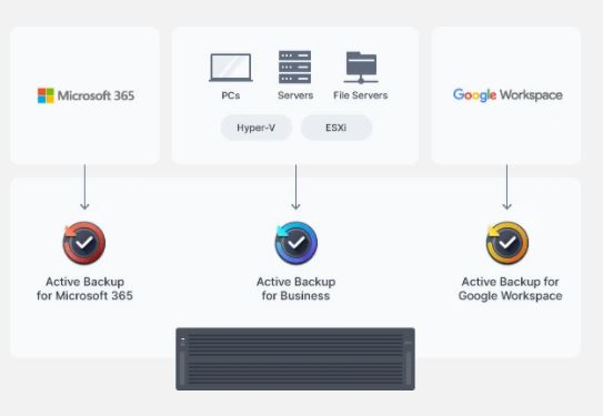 • 使用集中備份解決方案,備份計算機、服務(wù)器、Synology NAS 和虛擬機,并且為數(shù)據(jù)進行容災(zāi)保護。